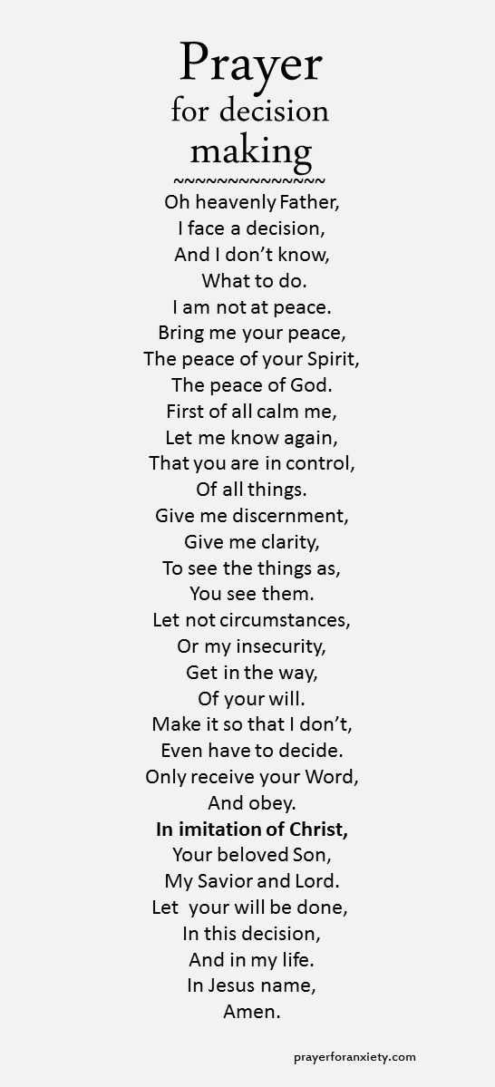 This prayer for decision making can help inspire you to seek God’s will. Do you want to have more clarity when making decisions? You can find it in prayer. See our complete list of prayers here.