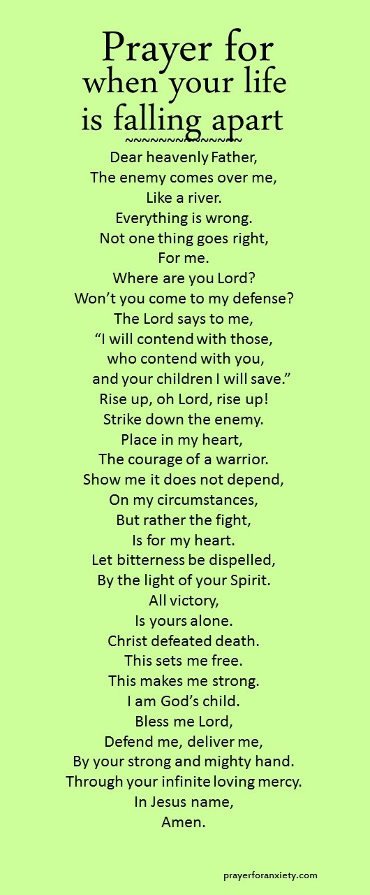 When it seems as if your life is falling apart, this prayer can inspire you ask God for deliverance. Remember, many times the greatest struggle is how we perceive things. You can change your reality by letting God change your attitude.