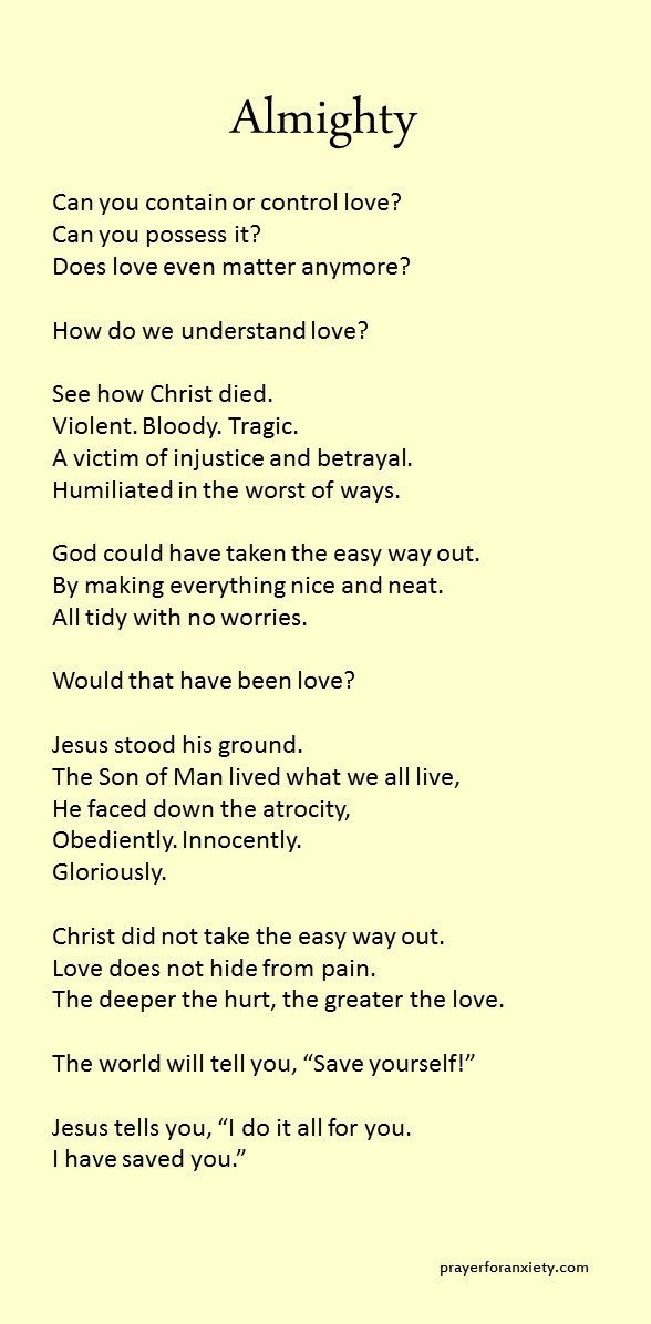 God doesn’t demonstrate his love through power or control. The Messiah took the cross upon himself to show us a more excellent way.