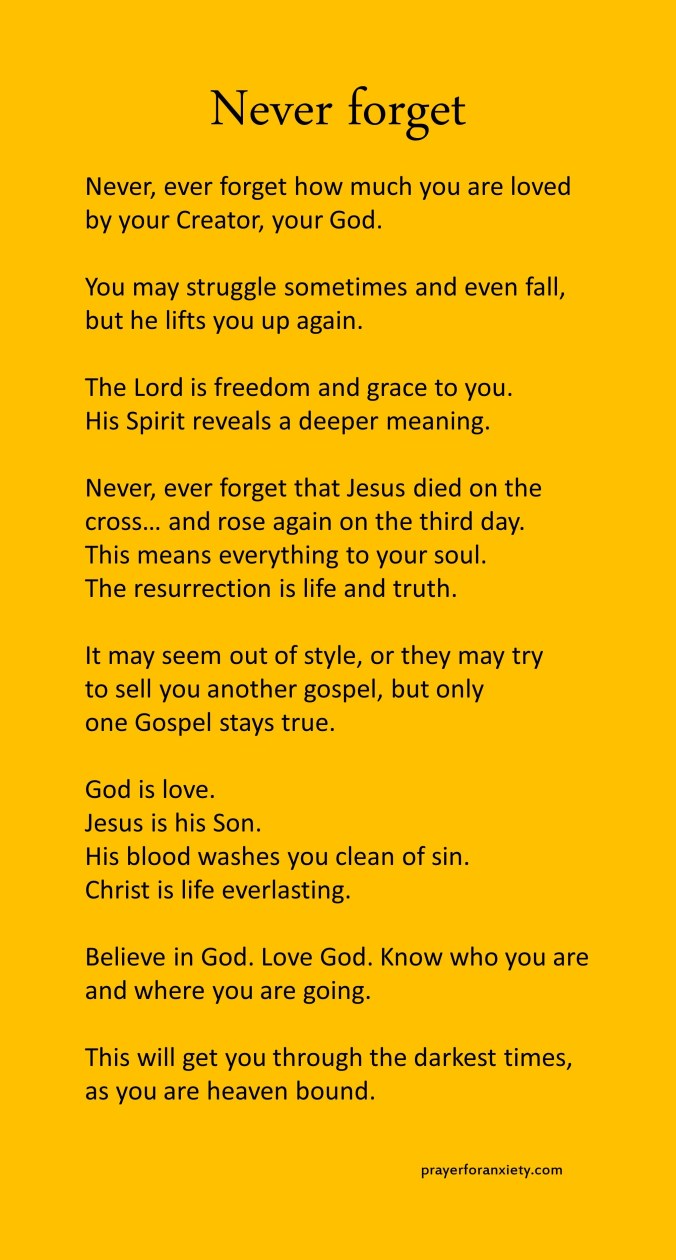 Never, ever forget that Jesus died on the cross… and rose again on the third day.