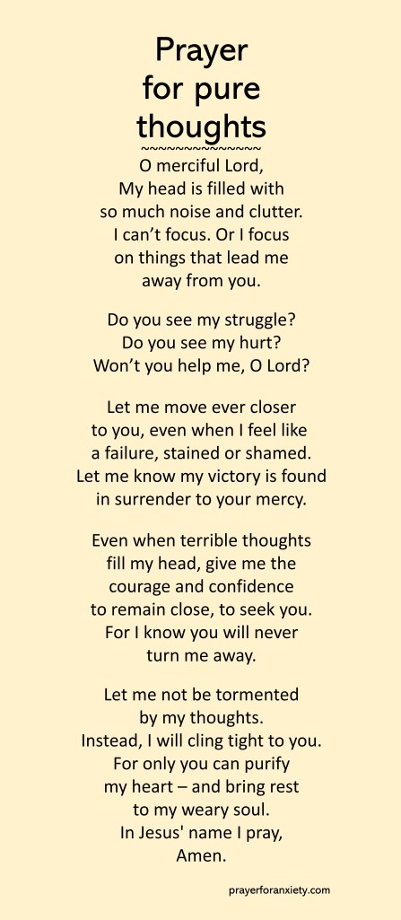 Maybe you don’t need to fight it. Don’t let bad thoughts frighten you or make you feel bad about yourself. Instead, open up to God’s mercy. He will never reject you — especially not for thinking bad thoughts.